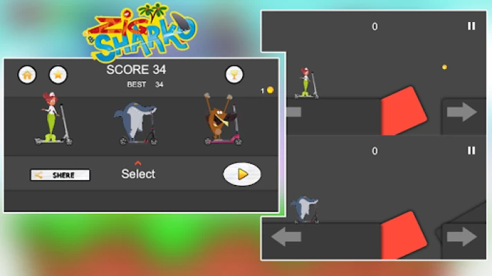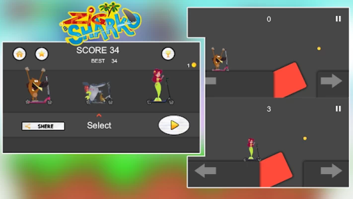 Watch out for moving obstacles and try to do some good maneuvers! Choose to play as multiple zig, Marina, Sharko, kick scooters. Compete with your friends for the highest score.
