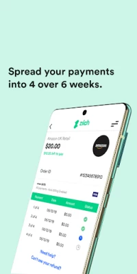 I made my first purchase with zilt and Amazon. They did not split the payment into four payments. They took the full ammount. Once I added up the several amounts picking out of my account. The total was actually more than the amount I spent. If you're supposed to be able to take it out in payments of four, there six transactions in an hour and a half? Beware. Be warned Be careful because customer service just repeated when's first payment is paid? My amount that I can use will be upped.