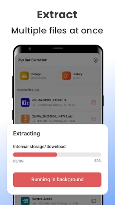 Zip Extractor for Android is designed to make file compression and extraction simple for everyone. Whether you need to unpack a RAR file, unzip a folder, or compress multiple documents into one convenient ZIP, this app does it instantly.