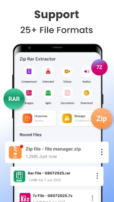 ✅ Support for many formats – Extract and compress files like DOCX, XLSX, PPTX, PDF, PNG, JPG, MP3, MP4, APK, TXT, and more.