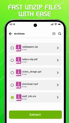 Instantly extract zip, rar, 7z, and tar files on your phone with support for password-protected archives. The app also lets you extract files from zip folders and manage large archives quickly.