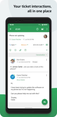 The app is not nearly as good as the freshdesk app, but is passable for small ticket chains. However, as soon as you have a large ticket, with lots of replies, it crashes and freezes almost constantly when trying to reply. I'm using a flagship android phone, so I'd expect the phone to be able to handle anything. But I expect the app is designed inefficiently in that it loads all previous responses on the ticket when you try to reply and this is probably too much for the phone to handle.
