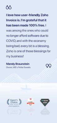 Easy to use, helpful invoice and records system. The only thing I can find that is an issue is when sending an invoice via email using the app or website on the PC version, the link to show the invoice does not work properly. I now just send the invoice to myself with an attachment and send the attached invoice through my own email. invoices have a small banner at the bottom with Zoho branding / advertising. A small price to pay for a fully functioning invoice system for free.